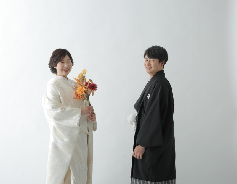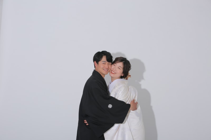 シンプルな背景で、おふたりの幸せな表情を主役にした一枚を
