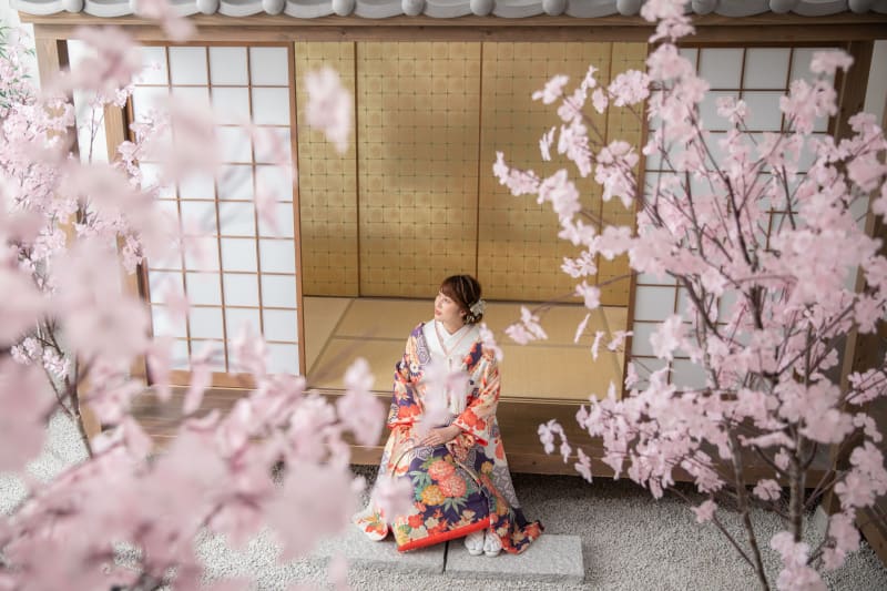 本日は、どの時期でも満開の桜と一緒に撮影できる大人気の屋内庭園スタジオ!!