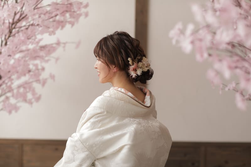 白無垢の色味、お柄などでコーディネートをし、