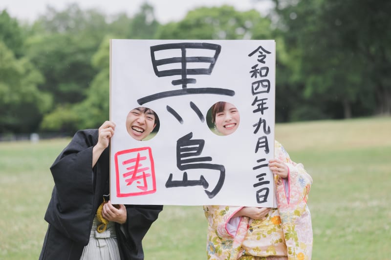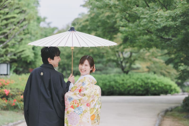 雨の中での撮影でしたが、新郎新婦様にこにこの笑顔で撮影を楽しんでくださりました♪