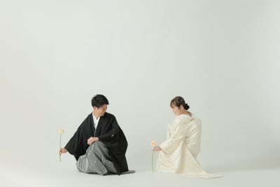 シンプルな背景で、おふたりの幸せな表情を主役にした一枚を