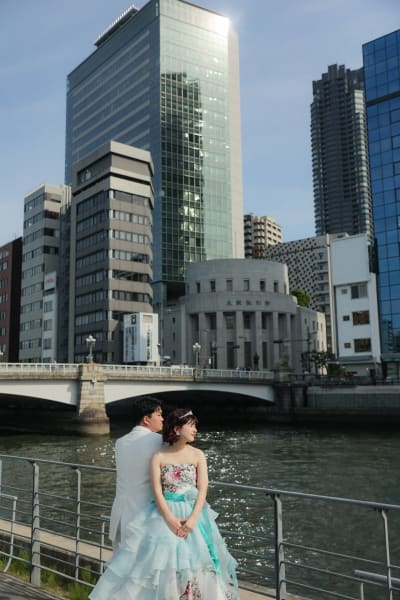中之島のビル群をバックに。オシャレな雰囲気でも撮影ができます!