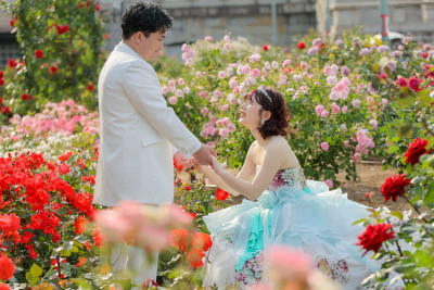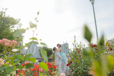 お次は中之島バラ園で。時期が合えばこのように満開の薔薇と撮影が可能です!素敵ですね。