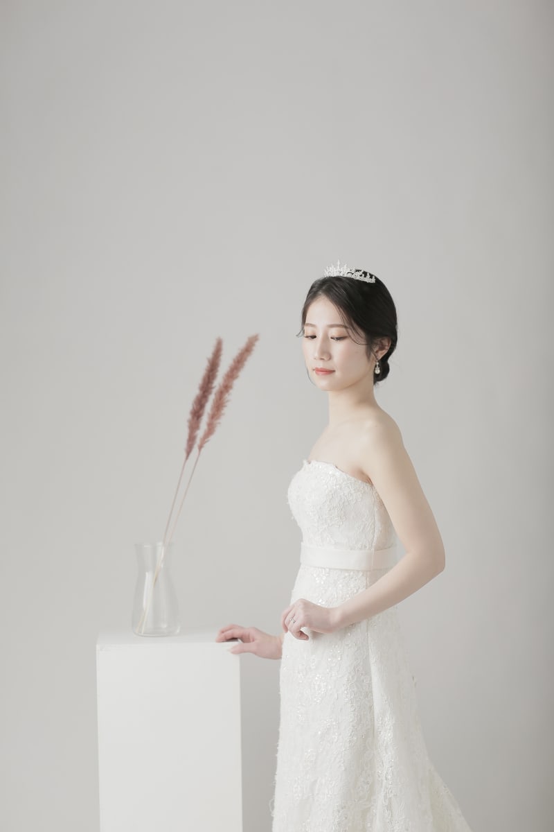 シンプルな背景で、おふたりの幸せな表情を主役にした一枚を