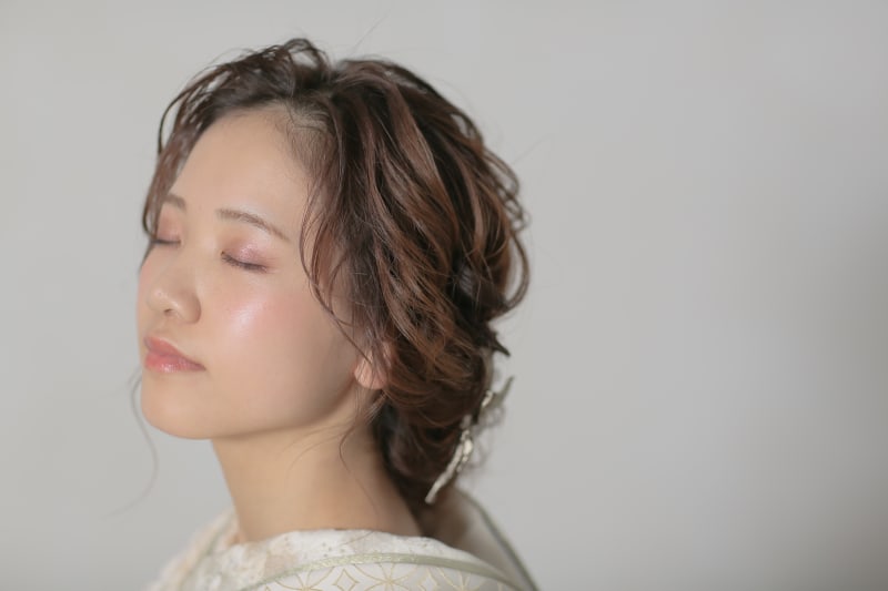 白無垢のときはあえて洋装で使われるシルバーのアクセサリーで