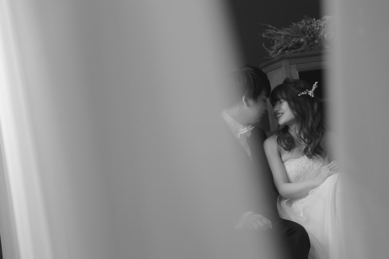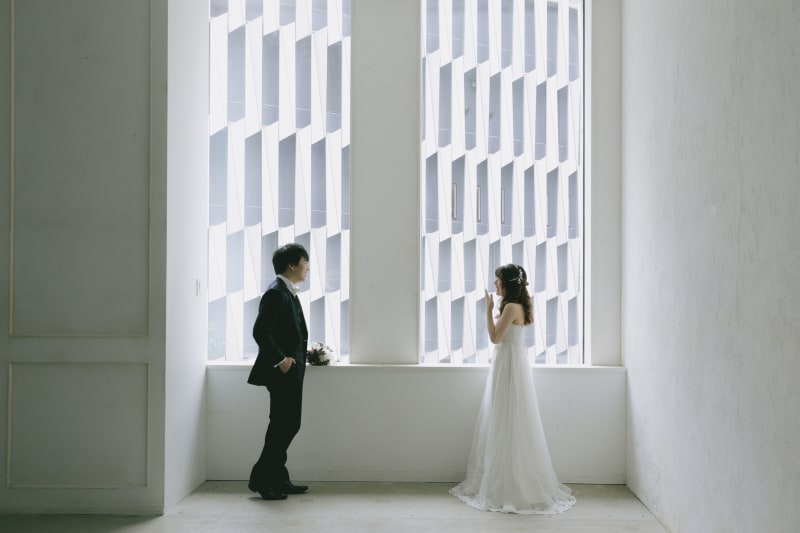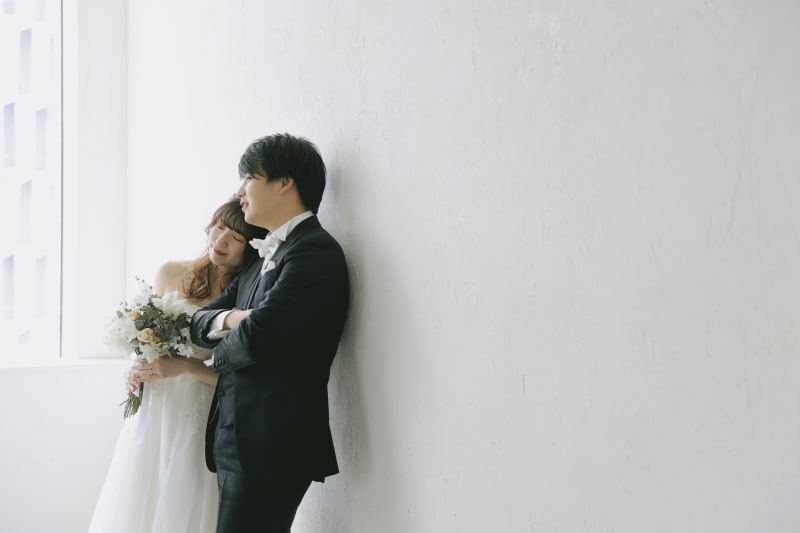 次は窓辺の隣にある真っ白背景の前で撮影していきます! 背景が真っ白だとお二人の表情がより際立ちますね〜☺︎