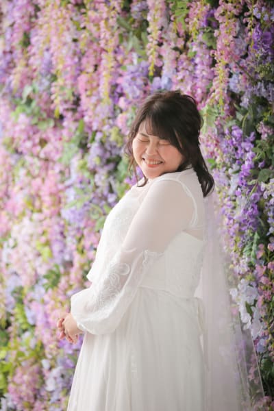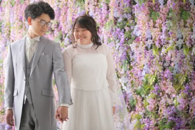 シンプルな背景で、おふたりの幸せな表情を主役にした一枚を