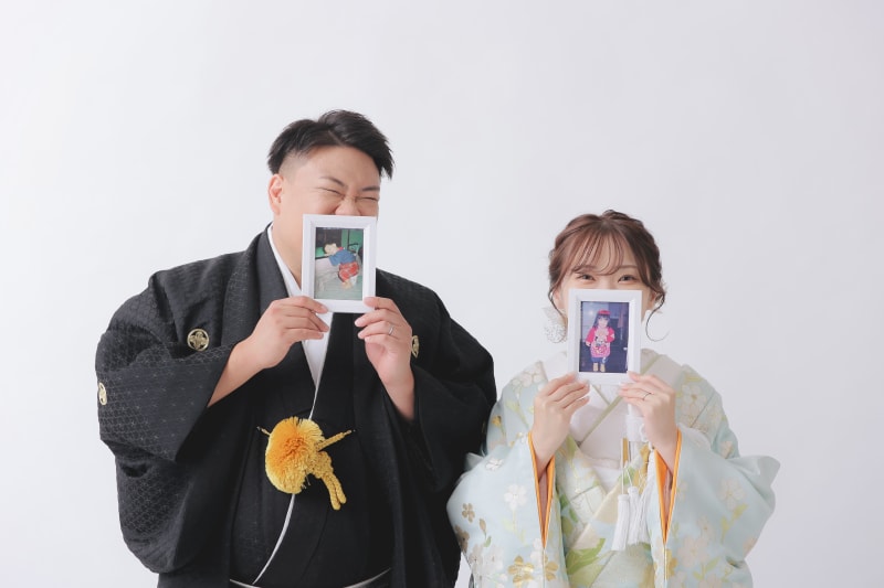 シンプルな背景で、おふたりの幸せな表情を主役にした一枚を