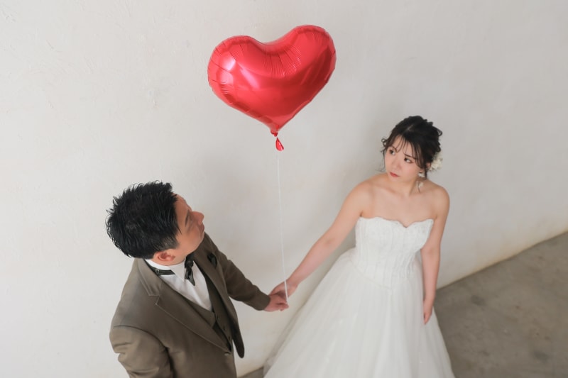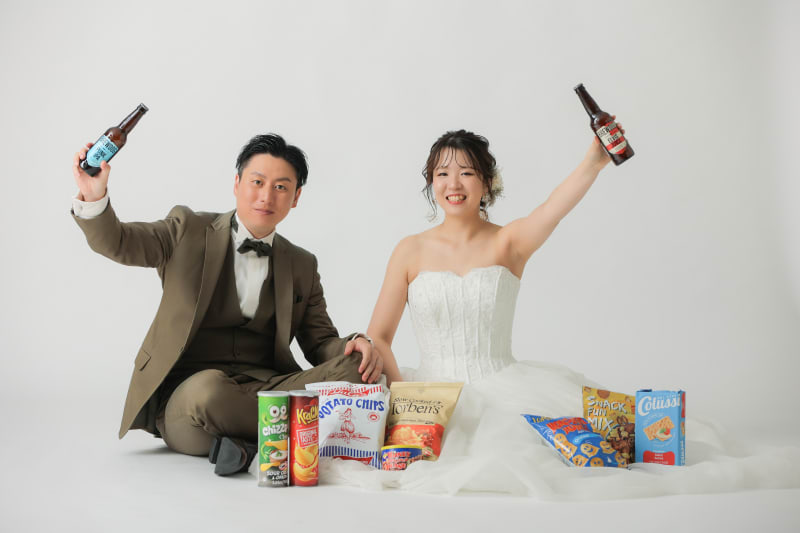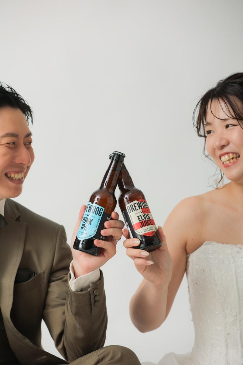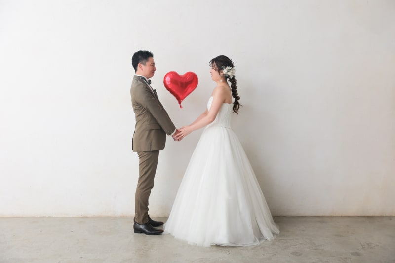 シンプルな背景で、おふたりの幸せな表情を主役にした一枚を
