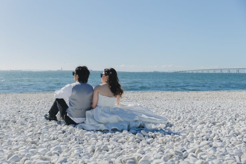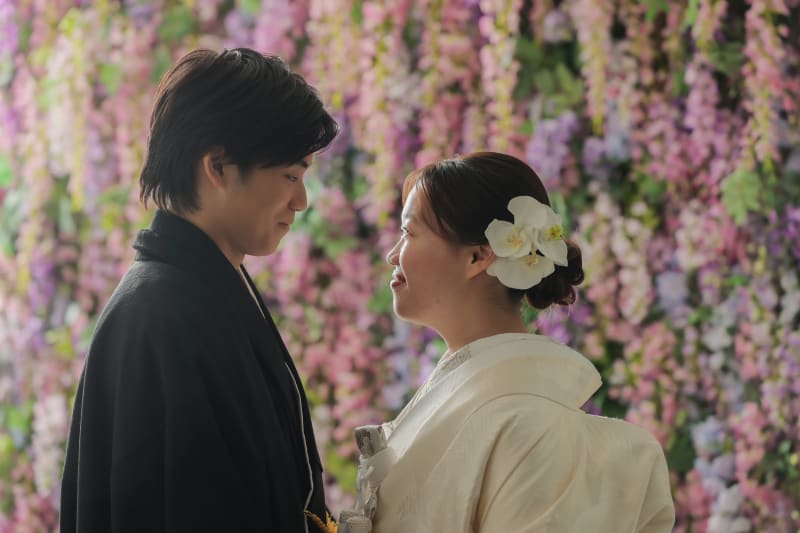 シンプルな背景で、おふたりの幸せな表情を主役にした一枚を