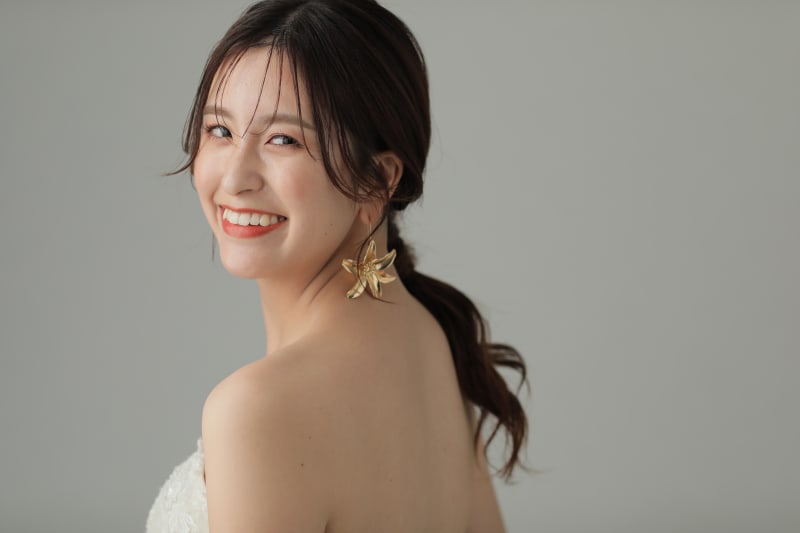 シンプルな背景で、おふたりの幸せな表情を主役にした一枚を