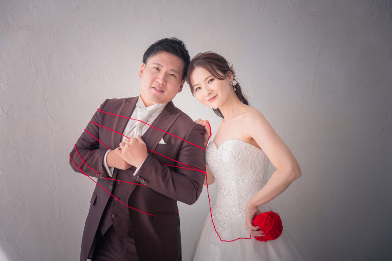 撮影アイテムに使いたいと赤い糸を持参してくれました。