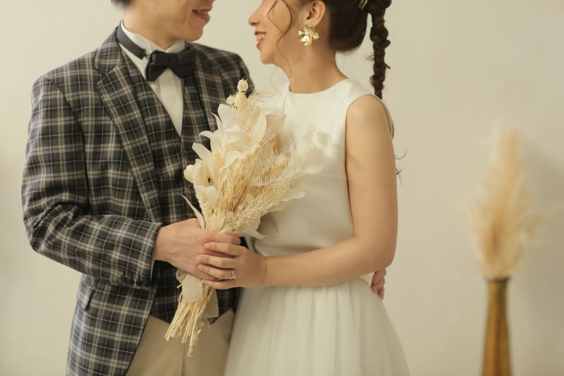 シンプルな背景で、おふたりの幸せな表情を主役にした一枚を