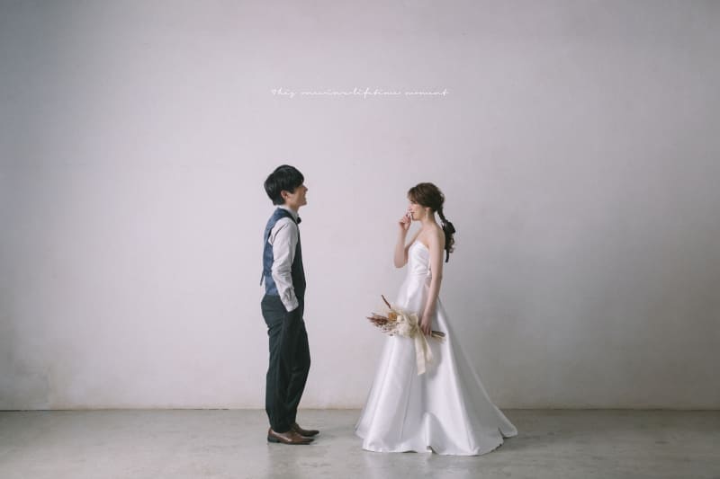 シンプルな背景で、おふたりの幸せな表情を主役にした一枚を