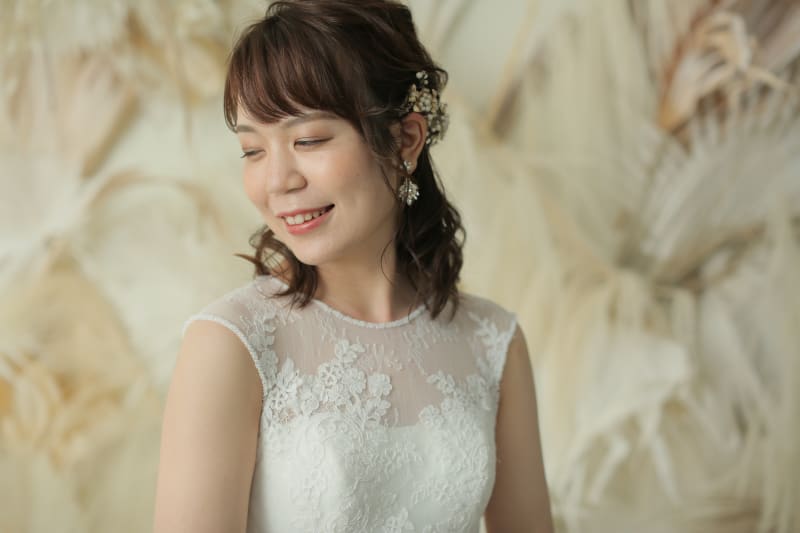 可愛らしいドレスの雰囲気に合わせて柔らかいヘアメイクに💄