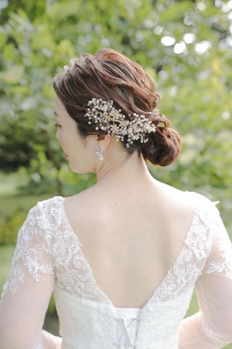 洋装はふんわり巻いて、ルーズシニヨンにしました♩