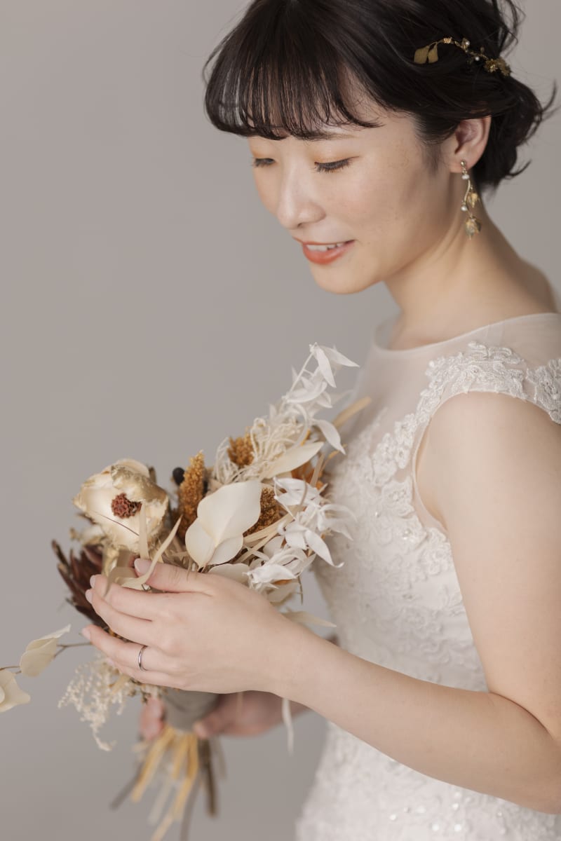 シンプルな背景で、おふたりの幸せな表情を主役にした一枚を
