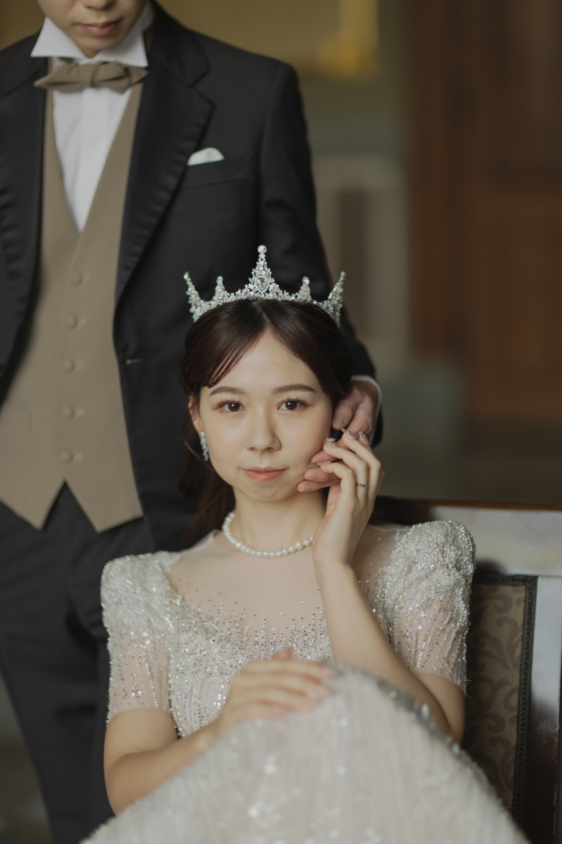 シンプルな背景で、おふたりの幸せな表情を主役にした一枚を