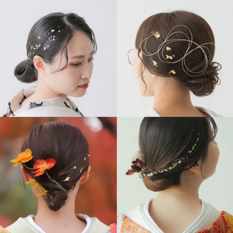 金箔を髪飾りとして使用するのが最近のトレンドです。