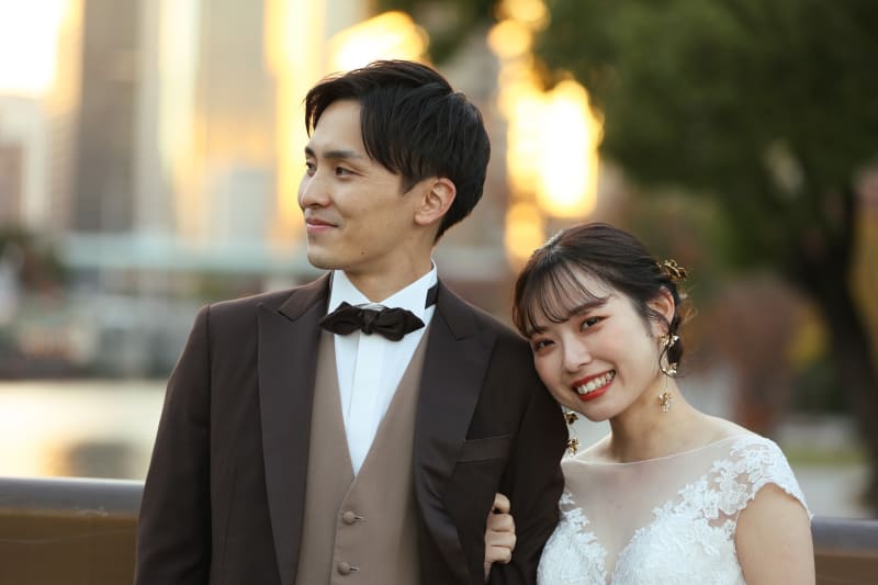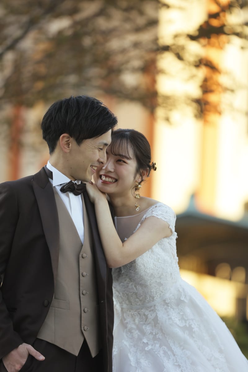 シンプルな背景で、おふたりの幸せな表情を主役にした一枚を