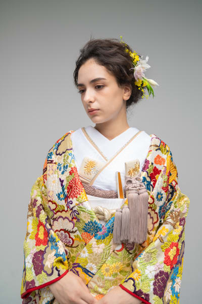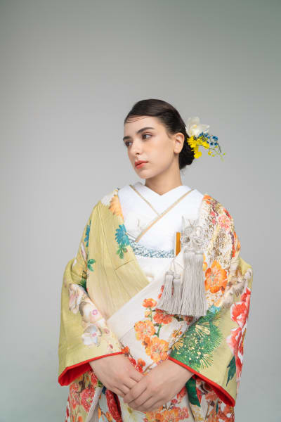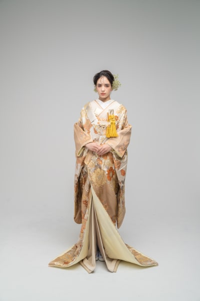 色打掛では珍しいベージュ!パキッとしすぎず柔らかい雰囲気を演出できそうですね!🎵