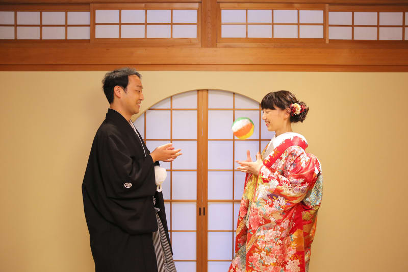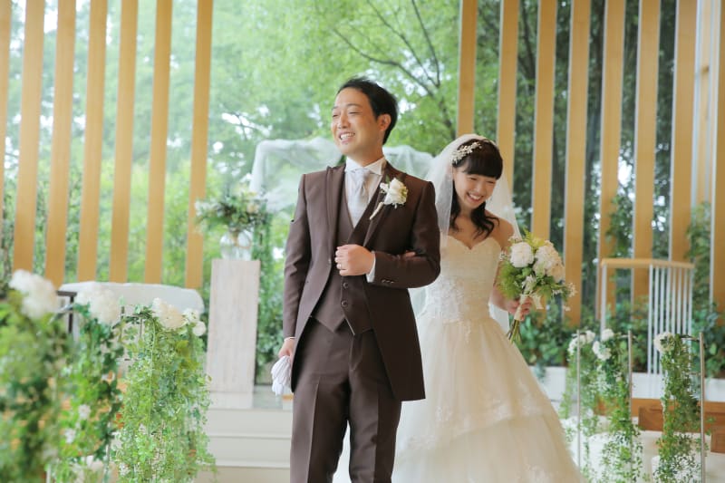 祝福の声が聞こえてきそうな、笑顔いっぱいの退場シーン。