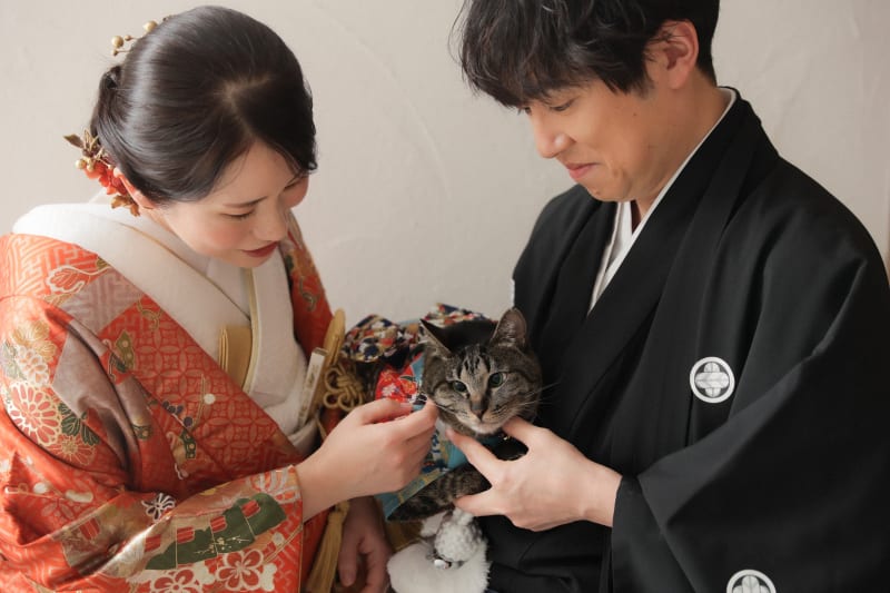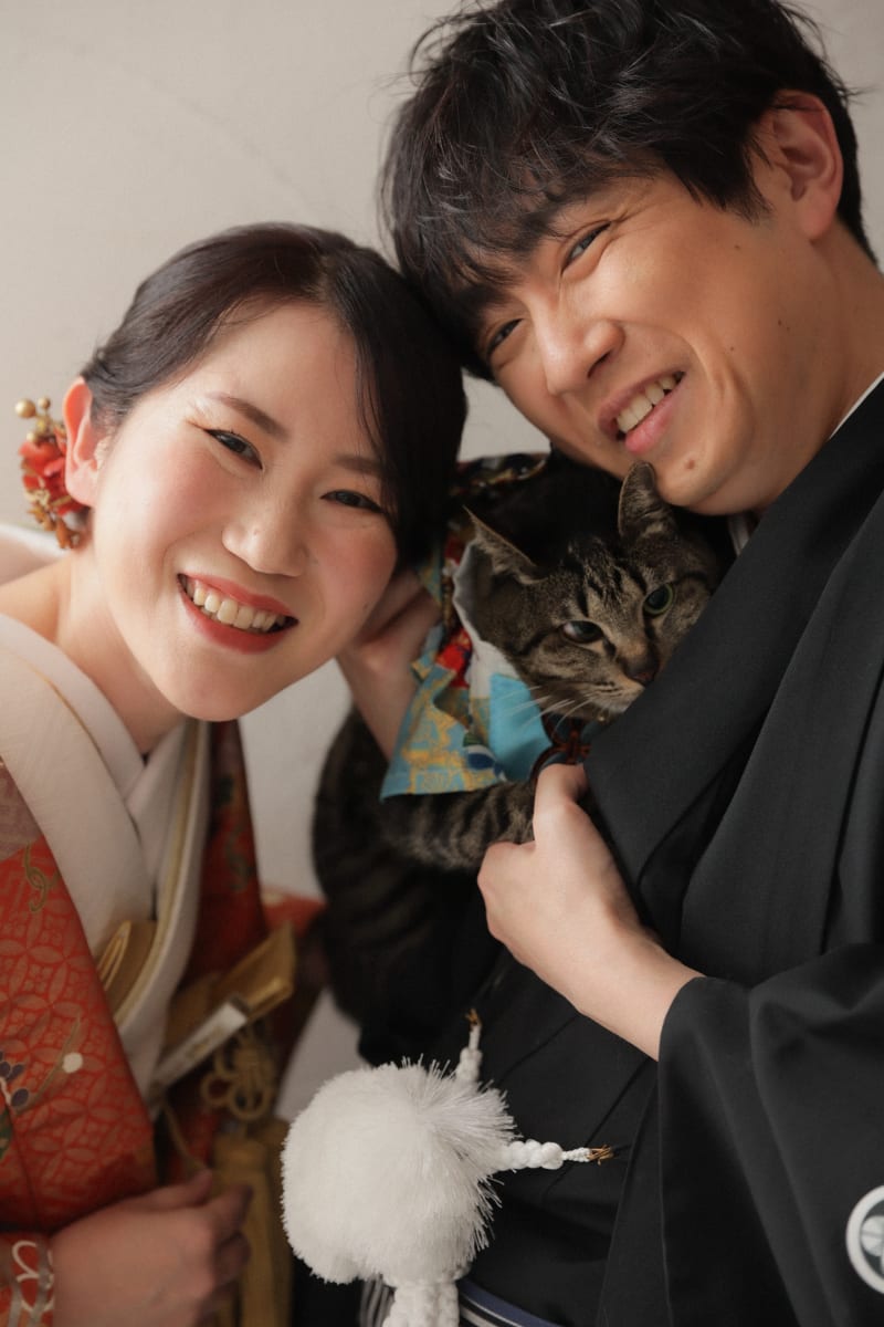 シンプルな背景で、おふたりの幸せな表情を主役にした一枚を