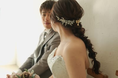 シンプルな背景で、おふたりの幸せな表情を主役にした一枚を