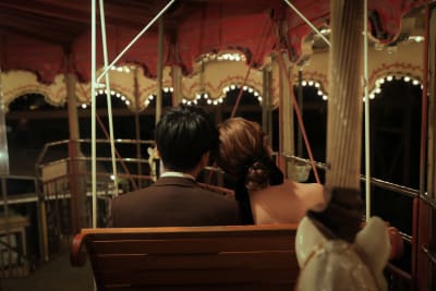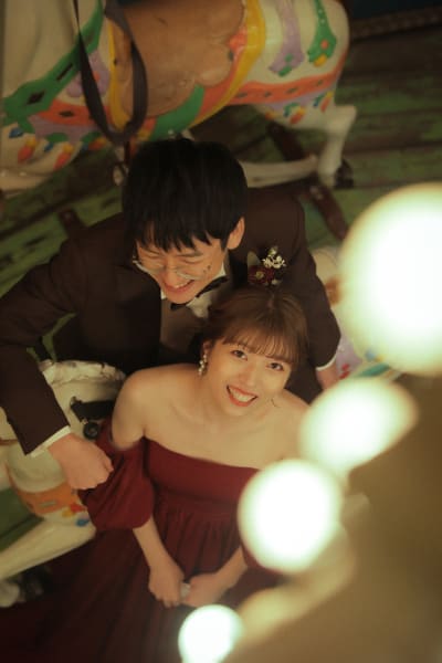 シンプルな背景で、おふたりの幸せな表情を主役にした一枚を