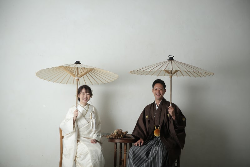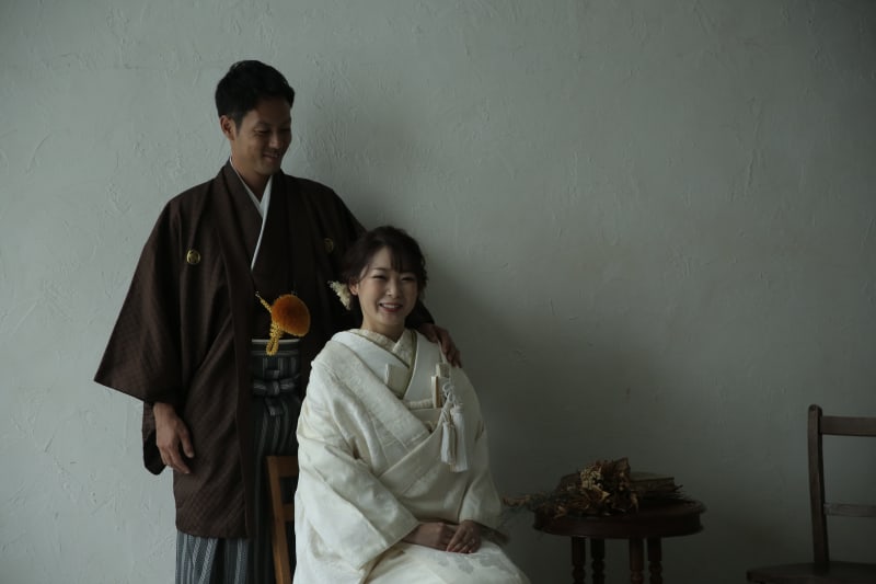 シンプルな背景で、おふたりの幸せな表情を主役にした一枚を