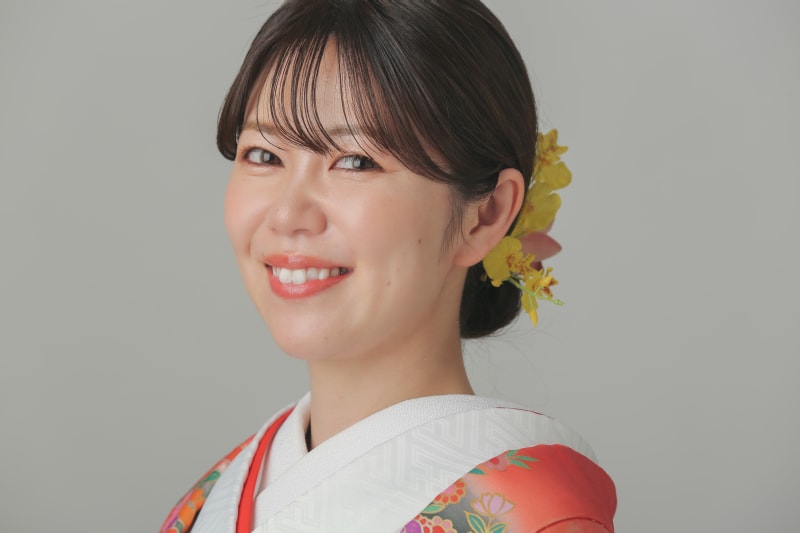 つづいて、和装ではルーズな可愛いヘアスタイルから雰囲気を変えて