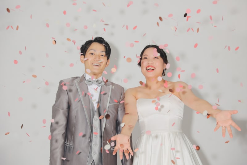 コンフェッティーを使って撮影もしました◎