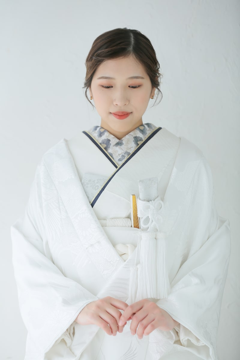 こちらは白無垢にブルー、ネイビーを合わせたコーディネート