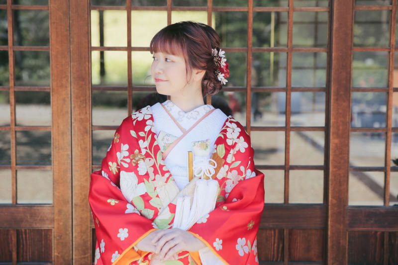 撮影に合わせてヘアカラーをバッチリ👌赤の色味入れすぎたかなー?と心配されていましたが、選んだお着物と相性ピッタリ!!とってもお似合いでした◎