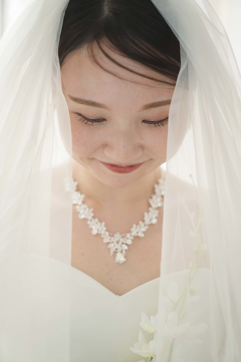 ボリュームベールとシンプルヘアスタイル