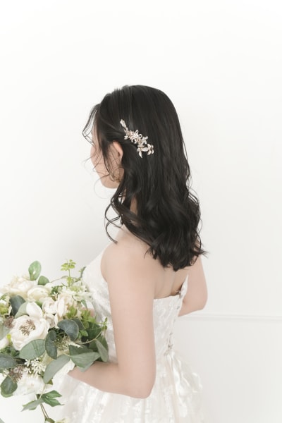 ハーフアップの様にすっきりさせたので、顔周りの短いうぶ毛をくりっと巻いてかわいさUP♡