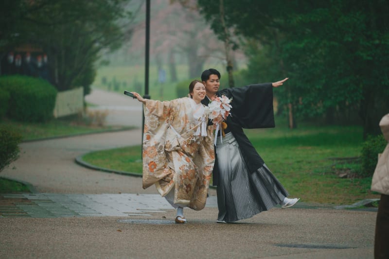 和装は和傘のご用意があるので、小雨なら撮影決行されるお客様が多いです。