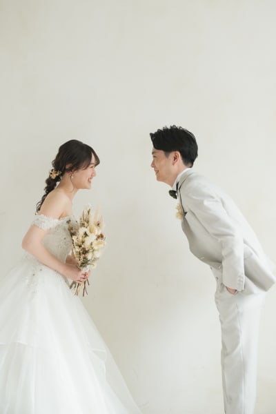 普段のおふたりの表情を引き出せるよう、見つめ合うショットやたくさんお話をしながら撮影していきます🌼