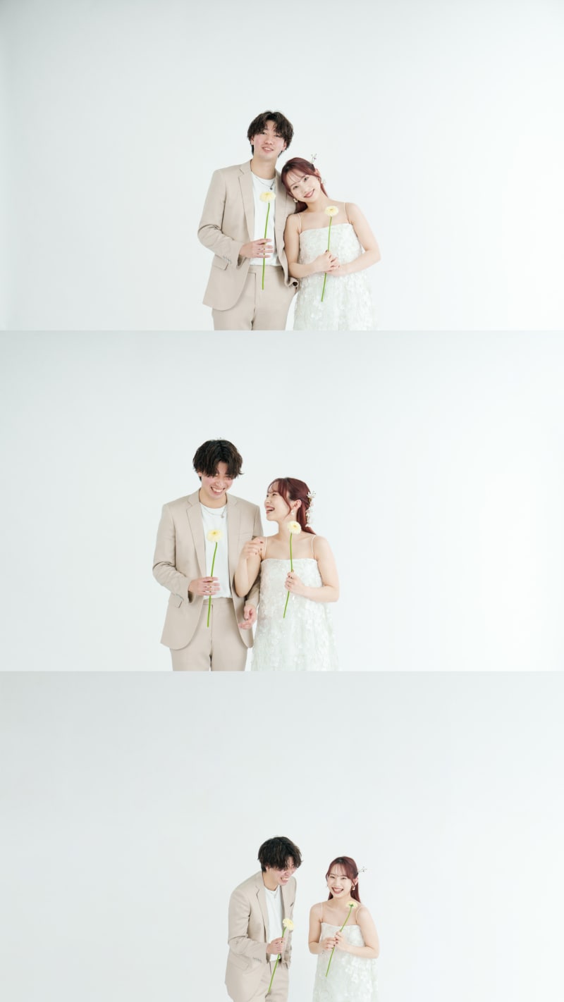 撮影中は、お二人に自由に動いていただいたり、カメラマンからポーズの指定があったりと