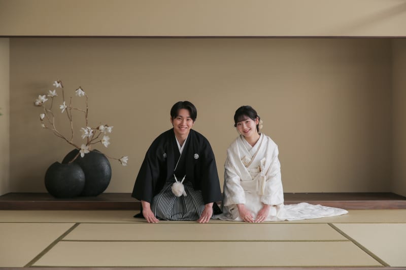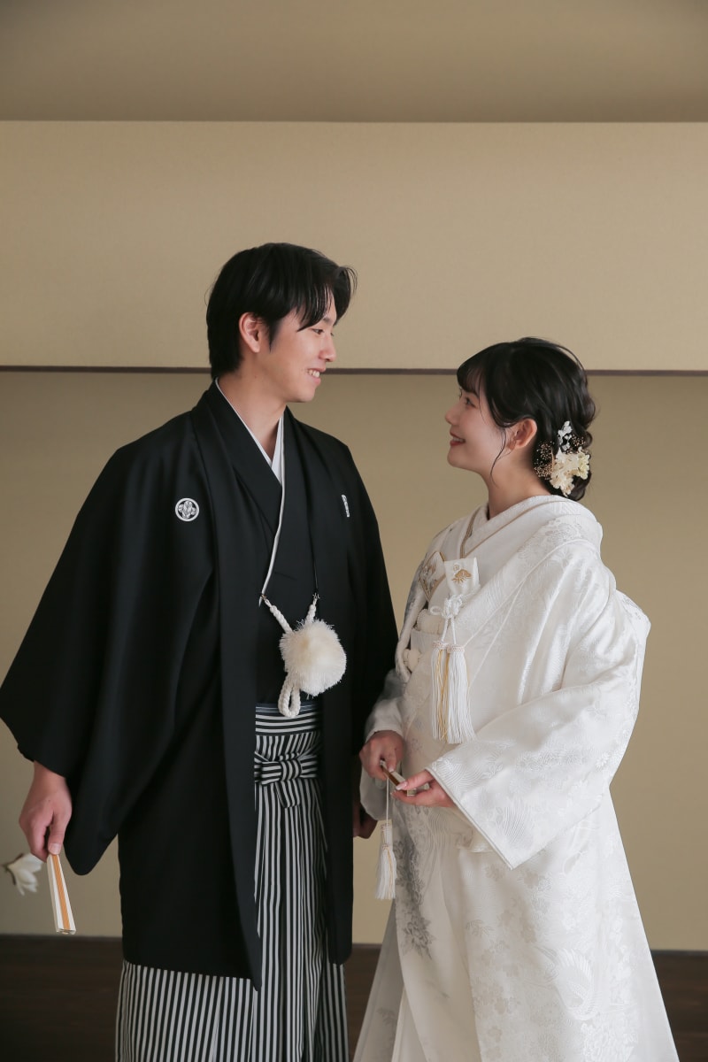 新郎様も着物を変え、お二人とも白と黒でとても雰囲気が変わります🍀