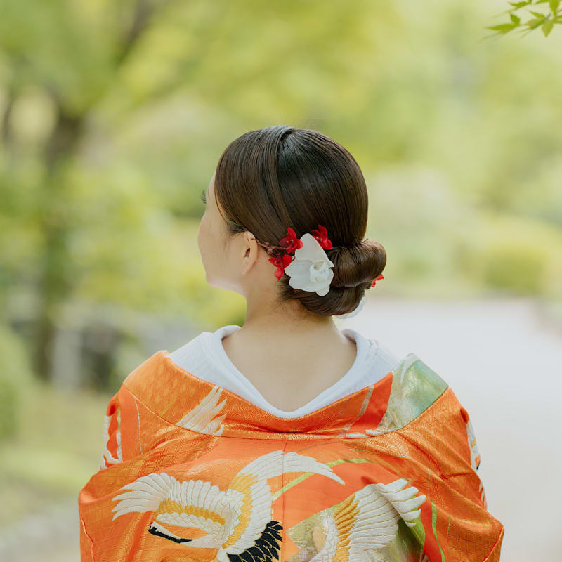 髪飾りは、色打掛の色味と新婦様の綺麗目な雰囲気に合うようシンプルにしました!