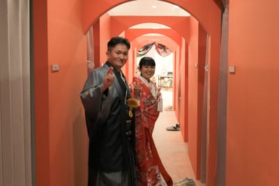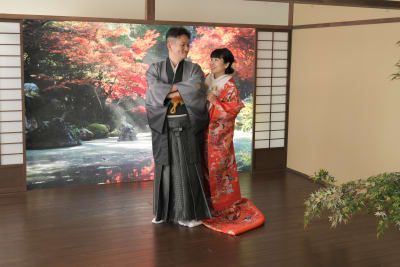 昔から絶えず着られている赤の色打掛は和装らしく、華やかです✨