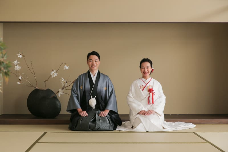 新郎様は華やかな黒とグレーのグラデーションの紋付き袴