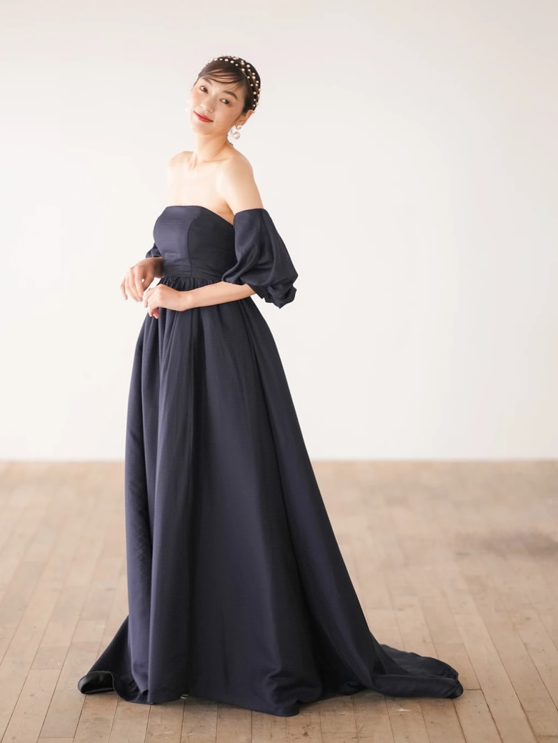 重くなりすぎないダークネイビードレス♡