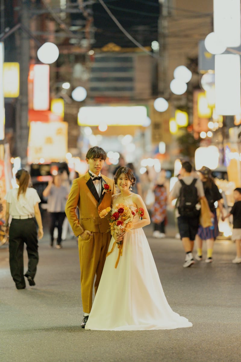 いつもの街並みも、ドレスとタキシード姿で歩けば特別な景色になります💫