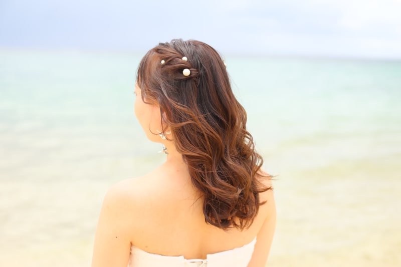 海など風が強いところの撮影では風に負けないヘアスタイルを作るように心がけています!