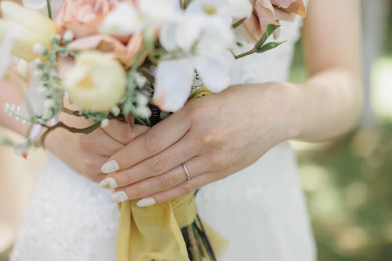 淡い色味のネイルとパステルカラーのブーケがとてもお似合いでした✨