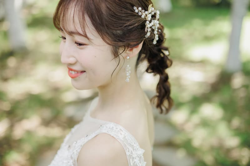 風で靡く後毛が新婦様の柔らかい雰囲気とマッチングしていて素敵です!