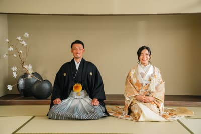 屋内庭園スタジオでは様々な背景で撮影できるのでお外に行かなくても日本の和装らしい撮影ができますよ🍁