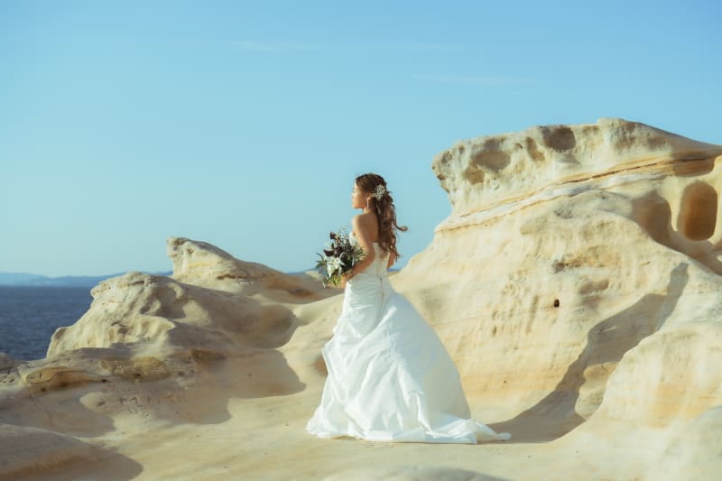 太平洋を背景に広がる大きな白い海岸、何年もかけて打ち寄せられ荒波に侵食された岩畳のような景観は、水平線に沈む夕日と共に大地のパワーを頂けれた気持ちになりました